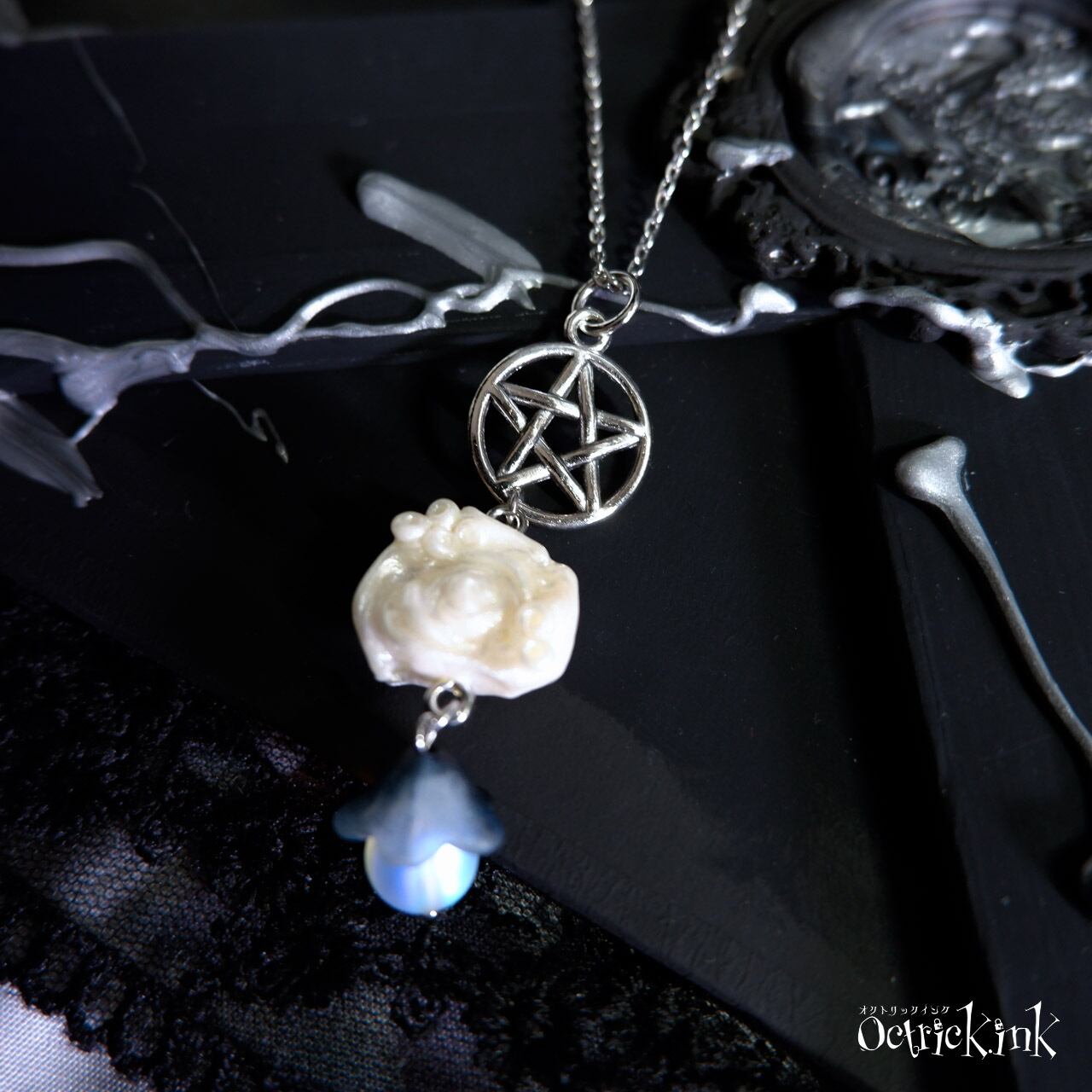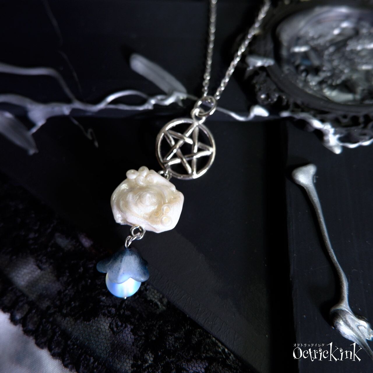 五芒星と霧の深海薔薇ネックレス|KRAKEN Bubble Rose Pentagram and fog Necklace